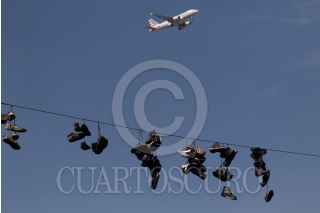 CIUDAD DE MÉXICO, 20ENERO2019.- Un avión con la bandera norteamericana surca los cielos de la capital mexicana. FOTO: MOISÉS PABLO /CUARTOSCURO.COM