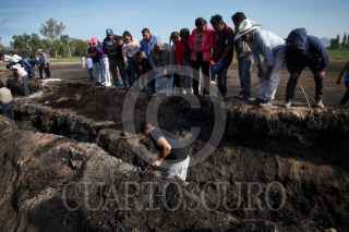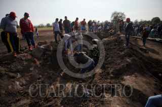 TLAHUELILPAN, HIDALGO, 20ENERO2019.- Decenas de personas comenzaron a buscar en el lugar donde hace el pasado 18 de enero sucedio una explosión cuando un ducto de Pemex estaba siendo saqueado por pabladores, ellos señalaron que aún hay restos de personas ahí sepultadas en la zanja, por lo que inciaron con palas y picos la búsqueda, ayer cuando los Agentes Ministeriales iban a sacar los cuerpos del lugar un grupo de personas indicaron que una máquina había sepultado a varios cuando tapo una parte del socavón. FOTO: ISAAC ESQUIVEL /CUARTOSCURO.COM