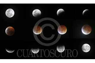 ATENANGO DEL RÍO, GUERRERO 21ENERO2019.- Fases del eclipse total de luna que se observó en todo el país. La imagen desde la comunidad de San Juan Teocalcingo en la Sierra del Sur. FOTO: MARGARITO PÉREZ RETANA /CUARTOSCURO.COM
