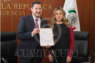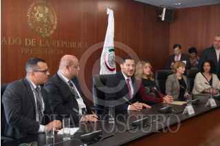 CIUDAD DE MÉXICO, 22ENERO2019.- Martí Batres Guadarrama, presidente del senado y Soledad Aragón Martínez, secretaria de Trabajo y Fomento al Empleo de la Ciudad de México, presidieron entrega de exhorto al Senado de la República a ratificar el Convenio 189 de la Organización Internacional del Trabajo para garantizar los derechos de la personas trabajadoras del hogar e impedir situaciones de abuso y explotación. FOTO: ANDREA MURCIA /CUARTOSCURO.COM
