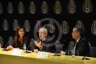 TOLUCA, ESTADO DE MÉXICO, 23ENERO2019.- Arturo Brizio, presidente de la Comisión de Arbitraje, Eugenio Rivas presidente de la Comisión Disciplinaria de la FMF y Beatriz Ramos, Directora de Comunicación e Imagen de la Federación, en conferencia de prensa dieron un balance sobre el funcionamiento del VAR, y la resistencia de algunos árbitros por utilizarlo, esto después de la polémica que surgió en el partido de Chivas ante Toluca con el gol anulado en la jornada 3 del Clausura 2019. FOTO: ARTEMIO GUERRA BAZ: CUARTOSCURO.COM