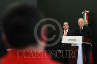 CIUDAD DE MÉXICO, 24ENERO2019.- Alejandro Gertz Manero, Fiscal General de la República, y Felipe de Jesús Muñoz Vázquez, Subprocurador Especializado en Investigación de Delitos Federales, ofrecieron una conferencia de prensa en la cual aseguró que se están siguiendo averiguaciones previas desde 2015 de las cuales se han derivado seis proceso penales en contra de funcionarios de la Secretaría de Desarrollo, Agrario, Territorial y Urbano (Sedatu) por el caso conocido como la "estafa maestra". FOTO: FGR /CUARTOSCURO.COM