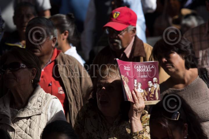 TULANCINGO, GUERRERO, 24ENERO2019.- Andrés Manuel López Obrador, Presidente de México, encabezó en el estadio Primero de Mayo la presentación del plan para el desarrollo integral para el bienestar, la cual será integrada por diversos programas sociales. Lo acompaño el gobernador del estado, Omar Fayad Meneses. FOTO: GALO CAÑAS /CUARTOSCURO.COM