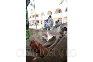 Cancún Quintana Roo 26 AGOSTO 2004.- Simpatizantes de Ignacio García Zalvidea, alcalde, mantienen el plantón a las afueras del Palacio Municipal de Benito Juárez. FOTO: Amaranta Prieto /CUARTOSCURO.COM