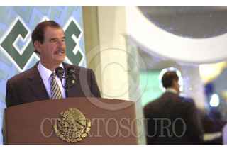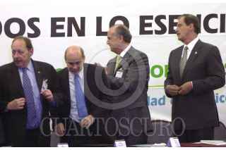 MEXDF28AGO2004.- El diputado del PRI Ernesto Elorduy, Manuel Medina Mora, presidente de la Asociación de Bancos, Manuel Angel Nuñez Soto, gobernador del estado de Hidalgo, y León Halkin, presidente de la Concamin, en la ceremonia de clausura de la Convención Nacional de Contribuyentes. FOTO:Eunice Adorno/CUARTOSCURO.COM
