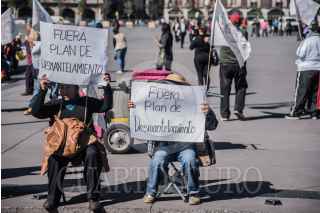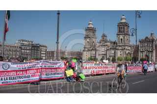 CIUDAD DE MÉXICO, 25ENERO2019.- Decenas de vecinos de Nezahualcóyotl e integrantes de la Asociación Nacional de Usuarios de Energía Eléctrica se manifestaron en la explanada del Zócalo Capitalino para protestar en contra del Plan de Desmantelamiento, y solicitarle al gobierno federal se conceda "borrón y cuenta nueva" en deudas por el concepto de consumo de energía eléctrica pendientes. FOTO: MARIO JASSO /CUARTOSCURO.COM