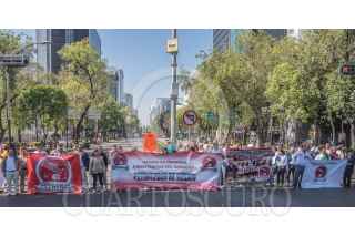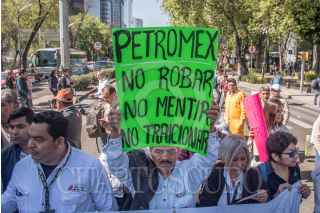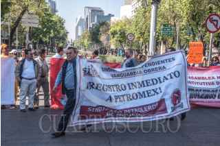 CIUDAD DE MÉXICO, 24ENERO2019.- Trabajadores de Pemex, principalmente opositores a Romero Deschamps, se manifestaron en avenida Paseo de la Reforma, para exigir a la STPS que se acepte la toma de nota a Petromex para poder establecerse de forma legal FOTO: MARIO JASSO /CUARTOSCURO.COM