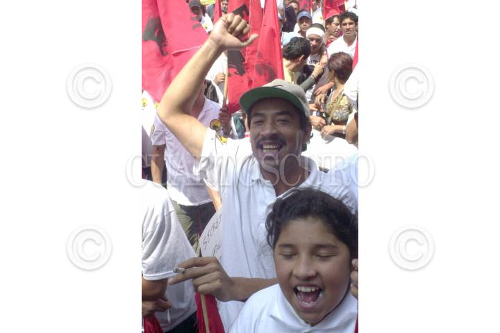 MEXDF26AGO2004.- Taxistas irregulares, pertenecientes al Frente Popular Francisco Villa, bloqueando la circulación sobre las calles de Donceles y Allende, frente a la Asamblea Legislativa del Distrito Federal, para exigir a los diputados locales regularizar sus unidades de transporte. FOTO:Eunice Adorno/CUARTOSCURO.COM