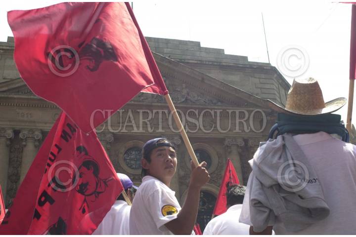 MEXDF26AGO2004.- Taxistas irregulares, pertenecientes al Frente Popular Francisco Villa, bloqueando la circulación sobre las calles de Donceles y Allende, frente a la Asamblea Legislativa del Distrito Federal, para exigir a los diputados locales regularizar sus unidades de transporte. FOTO:Eunice Adorno/CUARTOSCURO.COM