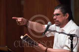 CIUDAD DE MÉXICO, 27ENERO2019.- El actor Alberto Estrella leyó obras de Jorge Ibargüengoitia, como "Estas ruinas que ves", en el marco del ciclo de lecturas "Leo Luego Existo", que se realizan los domingos en la sala Manuel M. Ponce del Palacio de Bellas Artes. FOTO: MOISÉS PABLO /CUARTOSCURO.COM