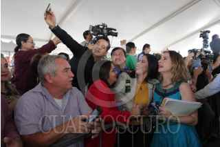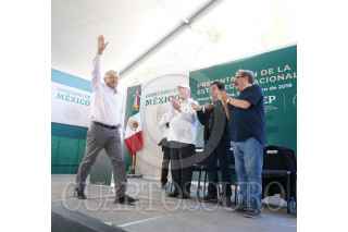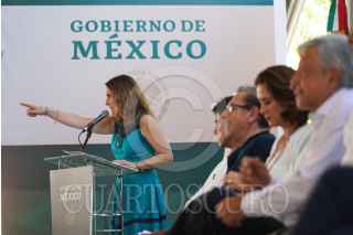 MOCORITO, SINALOA, 27ENERO2019.- El Presidente de México, Andrés Manuel López Obrador, presentó la Estrategia Nacional de Lectura, estuvo acompañado por el gobernador de la entidad, Quirino Ordaz Coppel; Jesús Ramírez, Vocero de la Presidencia; Paco Ignacio Taibo II, encargado del Fondo de Cultura Económica, y su esposa Beatriz Gutiérrez Müller, presidenta honoraria del proyecto Memoria Histórica y Cultural de México. FOTO: GOBIERNO DE LA REPÚBLICA /CUARTOSCURO.COM