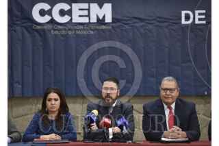 METEPEC, ESTADO DE MÉXICO, 28ENERO2019.- Laura González, integrante de CANACO acompañada por Martín Ramírez Olivas y Arturo Beteta integrantes de CCEM informaron que continúan las pérdidas económicas en el Valle de Toluca debido al desabasto de gasolina, con un déficit de más de 2 mil millones de pesos. FOTO: ARTEMIO GUERRA BAZ /CUARTOSCURO.COM