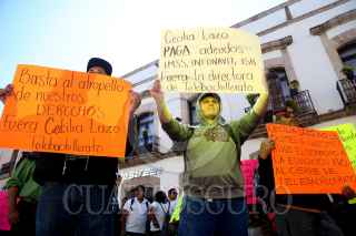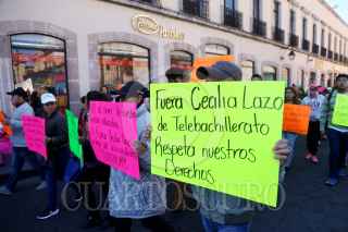 MORELIA, MICHOACÁN. 29ENERO2019.- Maestros del Sindicato Único de Trabajadores del Telebachillerato de Michoacán (Suttebam) se manifiestaron en la capital michoacana implementando bloqueos, en protesta por la retención de salarios y el incumplimiento en el pago de prestaciones. Exigen la salida de la directora general del Telebachillerato Cecilia Lazo de la Vega. FOTO: JUAN JOSÉ ESTRADA SERAFÍN /CUARTOSCURO.COM