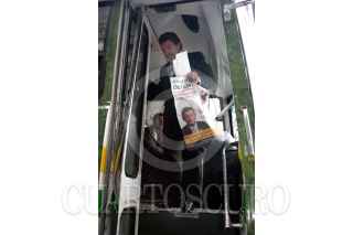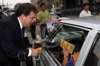 México, D.F., 27AGOSTO2004.- Alfredo Hernández Raigosa, diputado local del PRD, volanteo en microbuses y en las calles, como parte de la campaña perredista para promover la próxima marcha del domingo en favor del jefe de gobierno y detener la campaña de desafuero en su contra. FOTO: Moisés Pablo/CUARTOSCURO.COM