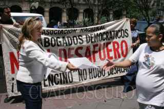 México, D.F., 27AGOSTO2004.-Miembros de la Asociación Nacional de Abogados Democráticos, iniciaron una campaña de volanteo para informar al público en general que el jefe de gobierno no cometio ningún desacato en el caso del Encino. FOTO: Moisés Pablo/CUARTOSCURO.COM