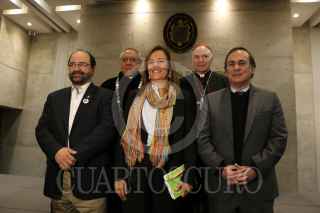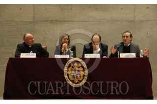 CIUDAD DE MÉXICO, 30ENERO2019.- Emiliano Álvarez Icaza Longoria, quien funge como senador ciudadano, Mario Ángel Flore Ramos, rector de la Universidad Pontificia de México (UPM), Margarita Ester Zavala Gómez del Campo, quien ahora es la directora de la asociación civil "Con vocación Política", Carlos Aguiar Retes, Arzobispo Priado de México y Juan Pablo Castañón Castañón, actual presidente del Consejo Coordinador Empresarial, durante la conmemoración de aniversario de la UPM, en donde se realizó un foro en el que se analizaron problemáticas actuales como; migrantes, seguridad, el papel de la mujer en la sociedad, las expectativas para México en el 2019 y el rol que tiene la iglesia sobre estos temas. FOTO: ROGELIO MORALES / CUARTOSCURO.COM