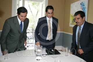 MEXICO, D. F. 27AGOSTO2004.- Alejandro Ramírez, presidente de estatal de convergencia, Carlos Gelista, presidente estatal del PAN y Florentino Castro presidente estatal del PRI a su llegada a una reunión que sostuvieron en la casa Lamn. FOTO: Nelly Salas/CUARTOSCURO.COM