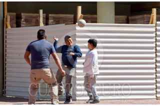 CIUDAD DE MÉXICO, 30ENERO2019.- Albañiles a cargo de la reparación del el mural en el Auditorio Alfonso Caso, en Ciudad Universitaria, se divierten jugando en la explanada. FOTO: RODRIGO RUBIO /CUARTOSCURO.COM