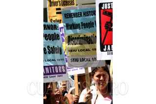OALKLAND, CALIFORNIA 27AGOSTO2004 - Inmigrantes se manifiestaron afuera del edificio del estado de California en Oakland, exigiendo que el Gobernador Arnold Schwarzenegger apoye una ley que permita a inmigrantes indocumentados a recibir licencias para conducir. FOTO: David Bacon/CUARTOSCURO.COM