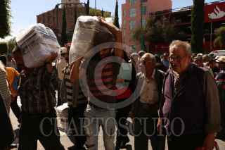 CIUDAD DE MÉXICO, 31ENERO2019.- El Sindicato Único de trabajadores de Autotransportes de Pasajeros de la Ruta 100, trasladó hasta las puestas del Tribunal Superior de Justicia de la Ciudad de México, media tonelada de expedientes acusatorios, los cuales se han ido acomunado en los últimos 24 años, desde 1995 año en el que los conflictos con la ya extinta ruta 100 comenzaron. Los miembros de este sindicato exigen una resolución a la lucha de más de dos décadas, en donde solicitan la devolución del 30% de su liquidación, la cual aportaron para la creación del fideicomiso, ante el inminente cierre de la ruta transportista. FOTO: ROGELIO MORALES /CUARTOSCURO.COM