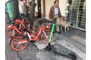 CIUDAD DE MÉXICO, 31ENERO2019.- Bicicletas sin Anclaje y Patines eléctricos son muy utilizados en colonias céntricas de la ciudad, como Nápoles, Roma y Condesa, sin embargo, estos nuevos medios de transporte de renta no están regulados y los usuario en ocasiones no los utilizan de forma responsable y respetando el reglamento de vialidad. FOTO: ISAAC ESQUIVEL /CUARTOSCURO.COM