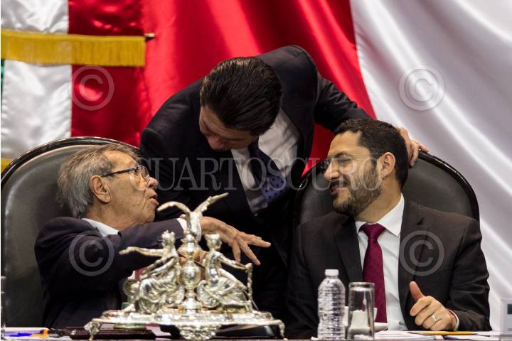 CIUDAD DE MÉXICO, 01FEBRERO2019.- Porfirio Muñoz Ledo, presidente la Cámara de Diputados; Martí Batres Guadarrama, presidente del Senado, y el diputado federal Javier Castañeda Pomposo, durante la clausura de la Comisión Permanente del Congreso de la Unión. FOTO: GALO CAÑAS /CUARTOSCURO.COM