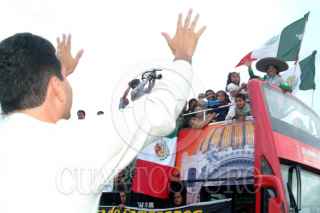 MEXICO, D.F. 27AGOSTO2004.- Aficionados asistieron a recibir a la ciclista mexicanan Belem Guerrero Mendez procedente de los juego olímpicos de Atenas 2004 al aeropuerto internacional de la Ciudad. FOTO: Iván Stephens/CUARTOSCURO.COM