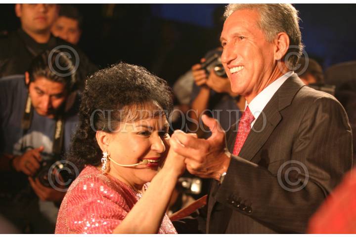 MEXICO, D.F. 28AGOSTO2004.- Arturo Montiel Rojas, gobernador del Estado de México, baila con Carmen Salinas al terminar la obra Aventurera. FOTO: Iván Stephens/CUARTOSCURO.COM