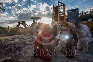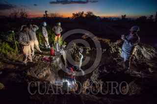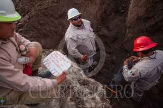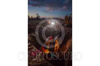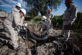 TLAHUELILPAN, HIDALGO, 03FEBRERO2019.- Una cuadrilla de doce trabajadores de Pemex trabaja sin descanso para clausurar tomas clandestinas en los ductos de la empresa petrolera. Tan solo en lo que va del año, en este estado se ha registrado 164 tomas. Los trabajadores regularmente son protegidos por elementos del Ejército, ya que además del riesgo que significa la reparación de los ductos, han llegado a ser atacados por grupos de Huachicoleros. Su trabajo comienza cuando la empresa les proporciona las coordenadas en donde se tiene detectada la fuga y ellos inmediatamente acuden al lugar para excavar y encontrarla; aseguran un perimetro para poder trabajar y comienzan a desarmar la toma clandestina para luego colocar un capuchón metálico que impide se siga sacando combustible del ducto. FOTO: ISAAC ESQUIVEL /CUARTOSCURO.COM