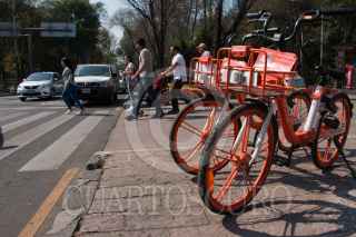 CIUDAD DE MÉXICO, 03FEBRERO2019.- El secretario de de Movilidad de la Ciudad de México Andrés Lajous, informó que los servicios de bicicletas sin anclaje que operan en delegaciones; Cuauhtémoc, Álvaro Obregón, Miguel Hidalgo y Benito Juárez, trabajan con permisos vencidos. Estos transportes individuales se han vuelto un problema para los habitantes de estas alcaldías debido a que no cuentan con lugares específicos en donde estacionarse y constantemente son dejados en lugares que dificultan el paso peatonal, obstruyen rampas para discapacitados y banquetas. FOTO: ROGELIO MORALES / CUARTOSCURO.COM