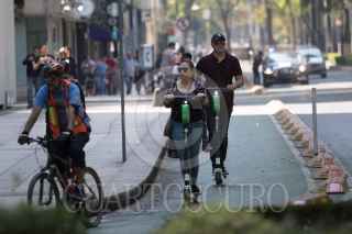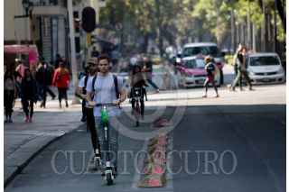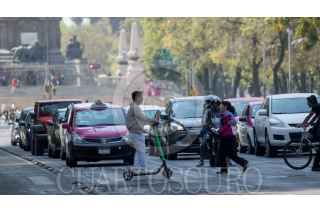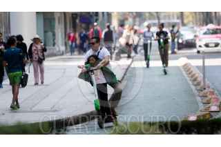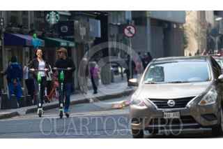CIUDAD DE MÉXICO, 04FEBRERO2019.- Los scooters o patines del diablo eléctricos han proliferado en alcaldías como Cuauhtémoc, Miguel Hidalgo, y Benito Juárez, las unidades son un sistema de transporte individual sin anclaje fijo, por lo que los usuarios las estacionan en banquetas y pasos peatonales, apenas el pasado viernes un usuario murió atropellado por un taxista, solo una de estas empresas tiene el visto bueno de la Semovi para operar, las demás solo podrán tramitar permisos temporales, sin embargo, ninguna de las empresas ofrecen la protección básica como casco, rodilleras y coderas, que son lo recomendable en este tipo de transporte. FOTO: MOISÉS PABLO /CUARTOSCURO.COM