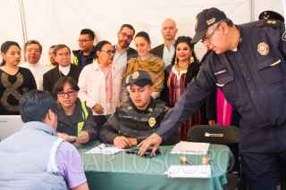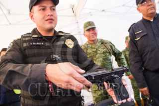 CIUDAD DE MÉXICO, 04FEBRERO2019.- Claudia Sheinbaum, jefa del Gobierno de la Ciudad, Clara Brugada, Alcaldesa de Iztapalapa, la secretaria del Gobierno Rosa Icela Rodriguez, encabezaron la ceremonia de canje de armas en el atrio de la Iglesia la Cueva de Iztapalapa. Niños también cambiaron juegos bélicos por didácticos. FOTO: VICTORIA VALTIERRA / CUARTOSCURO.COM