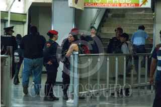 CIUDAD DE MÉXICO, 05FEBRERO2019.- En la estación del metro Deportivo 18 de Marzo de la línea 3 del metro en punto de las 12:30, policías bancarios brindaron el apoyo a una joven de aproximadamente 18 años, luego de que esta sufriera acoso por parte de un hombre dentro del convoy. Los cuerpos policiacos lograron detener al agresor en el lugar de los hechos. FOTO: ROGELIO MORALES /CUARTOSCURO.COM