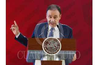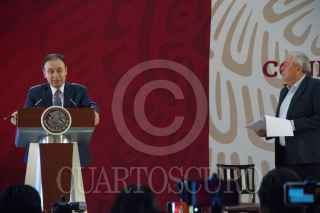 CIUDAD DE MÉXICO, 06FEBRERO2019.- Alfonso Durazo, secretario de Seguridad y Protección Ciudadana, anunció que se incrementará el número de elementos de seguridad en 17 regiones del país de manera permanente, en una conferencia de prensa realizada en el Palacio Nacional. En total serían 600 efectivos permanentes por cada una de las regiones, es decir 10,200 elementos extra. De estas regiones 15 ya están en funcionamiento, mientras que dos se incorporarán posteriormente. Lo acompaño Leonel Cota Montaño, subsecretario de Participación Ciudadana. FOTO: VICTORIA VALTIERRA /CUARTOSCURO.COM