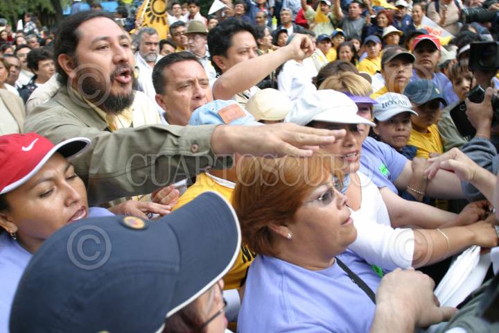MEXICO, D.F. 29AGOSTO2004.- Dos personas se treparon a un poste de luz en el paseo de la reforma con el fin de ver pasar a Andrés Manuel López Obrador, durante la marcha contra el juicio de desafuero al jefe capitalino. FOTO: Nelly Salas/CUARTOSCURO.COM