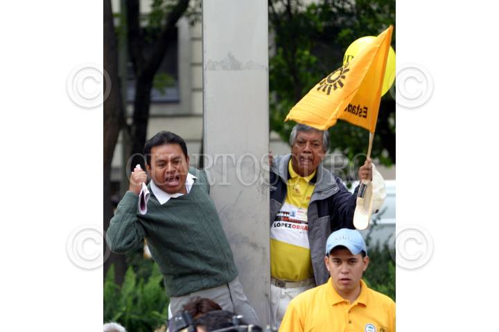 MEXICO, D.F. 29AGOSTO2004.- Dos personas se treparon a un poste de luz en el paseo de la reforma con el fin de ver pasar a Andrés Manuel López Obrador, durante la marcha contra el juicio de desafuero al jefe capitalino. FOTO: Nelly Salas/CUARTOSCURO.COM