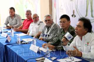 CUERNAVACA, MORELOS, 07FEBRERO2019.- Conferencia de prensa donde el Consejo Ciudadano de Seguridad Publica presento el programa "Soldado amigo" por medio del cual se capacitará a los militares en temas de derechos humanos y prevención del delito, además de que a partir de este momento soldados podrán ingresar a los comercios que participan en el programa para que coadyuven en la inhibición de delitos, anunció el General de la 24 Zona Militar Armando Gómez Mendoza. En la imagen de izquierda a derecha los empresarios Harry Nielsen, José Antonio Sánchez Púron, el comisionado de seguridad José Antonio Ortiz Guarneros, el presidente del consejo, Rafael Rueda Moncalian, el comandante de la 24 Zona Militar Armando Gómez Mendoza y Jorge Olivares Brito presidente de la Comisión Estatal de Derechos Humanos. FOTO: MARGARITO PÉREZ RETANA /CUARTOSCURO.COM