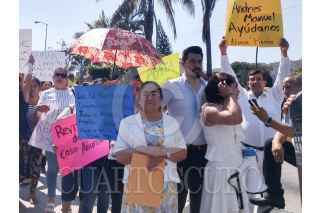 IGUALA, GUERRERO, 07FEBRERO2019.- Esther Villegas Velázquez, madre de Jose Luis Abarca, detenido por la desaparición de los 43 Normalistas de Ayotzinapa, encabezó a Un grupo de personas que se manifestó en la caseta ubicada a la entrada de Iguala. En este municipio, el presidente Andrés Manuel López Obrador entregó apoyos a jóvenes y madres, como parte del programa de Bienestar para las Familias. FOTO: ISAAC ESQUIVEL /CUARTOSCURO.COM