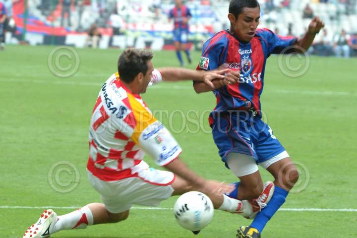 MEXICO, D.F. 29AGOSTO2004.- El atlantista Sebastián Gonzalez "Chamagol" festeja el cuarto tanto a favor de su equipo mientras uan Carlos Leaño (tecos) se lamenta de ello en el partido de la jornada 3 del torneo de apertura 2004 en el que Atlante venció 4 goles a cero a los Tecos de la U. de G. FOTO: Iván Stephens/CUARTOSCURO.COM