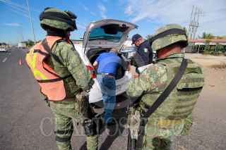 CULIACÁN, SINALOA, 07FEBRERO2019.- Elementos de las diferentes corporaciones policíacas y militares iniciaron este día el reforzamiento de seguridad en ésta ciudad, con el fin de inhibir las acciones delictivas y como parte del Plan de Paz y Seguridad 2018-2024 del Gobierno Federal. Ayer el Gobierno Federal anunció la instalación de 15 regiones para combatir la inseguridad, entre las que se encuentra Culiacán. El incremento en el patrullaje en sectores conflictivos de la ciudad y la colocación de retenes en las principales entradas y salidas fueron algunas de las primeras acciones que realizan los elementos. FOTO: JUAN CARLOS CRUZ /CUARTOSCURO.COM