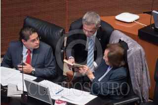 CIUDAD DE MÉXICO, 08FEBRERO2019.- Jenaro Villamil, propuesto por el gobierno federal para coordinar el Sistema Público de Radio y Televisión, junto con senadores del PAN, durante la Sesión Ordinaria en la Cámara de Senadores de este viernes, la cual se realizó bajo temáticas referentes al recorte presupuestal para estancias infantiles por parte del gobierno federal. FOTO: MARIO JASSO /CUARTOSCURO.COM