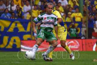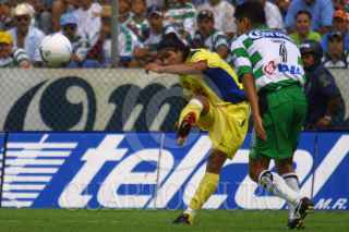 TORREON COAHUILA, 29AGOSTO2004.- Reynaldo Navia (América) hace un disparo en el juego de la jornada 3 del torneo de apertura 2004 en el que Santos enfrentó al América con un marcador de 1 a 1. FOTO:Jorge López/CUARTOSCURO.COM