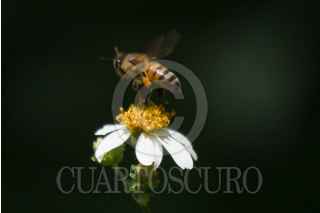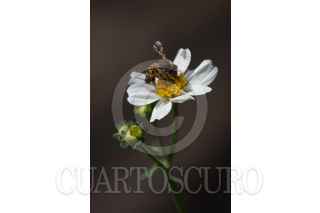 CAMPECHE, CAMPECHE, 10FEBRERO2019.- Una abeja obrera recolecta néctar de una flor silvestre blanca, con el fin de alimentarse. Las abejas son fundamentales para lograr la reproducción de las plantas, además, producen miel a partir del néctar que extraen de las flores. En la Península de Yucatán, estas han sido afectadas por la deforestación y el uso de pesticidas. FOTO: MARTÍN ZETINA /CUARTOSCURO.COM