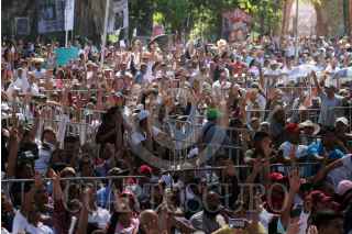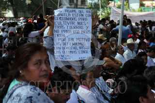 CUAUTLA, MORELOS, 10FEBRERO2019.- Opositores a la Central de Ciclo Combinado de Huexca manifiestan su rechazo a esta termoeléctrica durante la participación del presidente Andrés Manuel López Obrador. El presidente de la República visitó esta ciudad para presentar la “Propuesta del gobierno federal Planta Termoeléctrica en Huexca”, que consiste en una consulta pública en los estados de Morelos, Tlaxcala y Puebla los días 23 y 24 de febrero, y la obtención de un estudio de un organismo internacional para determinar el futuro de esta planta que ha generado rechazo de una parte de la población a la que el mandatario llamó “radicales de izquierda, conservadores”. FOTO: MARGARITO PÉREZ RETANA /CUARTOSCURO.COM