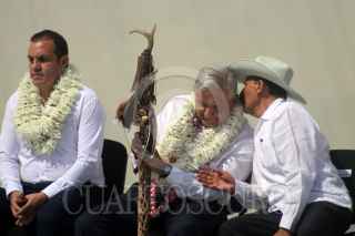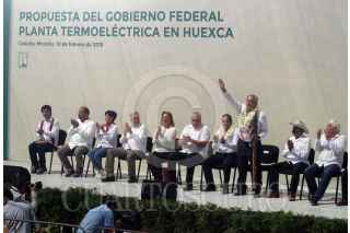 CUAUTLA, MORELOS, 10FEBRERO2019.- Andrés Manuel López Obrador, presidente de la República visitó esta ciudad para presentar la “Propuesta del gobierno federal Planta Termoeléctrica en Huexca”, que consiste en una consulta pública en los estados de Morelos, Tlaxcala y Puebla los días 23 y 24 de febrero para determinar el futuro de esta planta que ha generado rechazo de una parte de la población, a la que el mandatario llamó “radicales de izquierda, conservadores”. El presidente también se comprometió a signar la solicitud de un estudio con un organismo internacional en el que se garantice el suministro y calidad del agua. FOTO: MARGARITO PÉREZ RETANA /CUARTOSCURO.COM