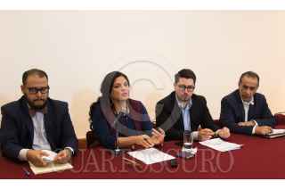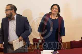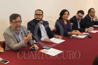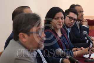 CIUDAD DE MÉXICO, 11FEBRERO2019.- Omar Monroy, titular de la Unidad de Administración y Finanzas de la Secretaría de Cultura; Alejandra Frausto, secretaria de Cultura, Antonio Martínez, Enlace de Comunicación Social y Vocero, Gabriel Sosa Plata, director de Radio Educación, ofrecieron una conferencia de prensa en la sala Adamo Boari del Palacio de Bellas Artes, en la cual hablaron sobre la reestructuración económica de la Secretaría de Cultura. FOTO: MOISÉS PABLO /CUARTOSCURO.COM