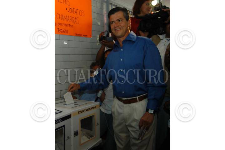 CORDOBA,VERACRUZ 04SEPTIEMBRE2004.- Personal de Acción Nacional, retiró la propaganda de Gerardo Buganza, candidato a la gubernatura por el PAN, de la escuela donde el abanderado emitió su voto. Se celebran elecciones para elegir gobernador, alcaldes y diputados locales. FOTO: Germán Romero/CUARTOSCURO.COM