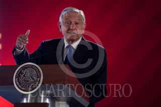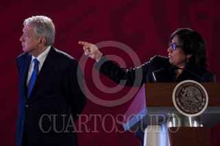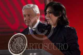 CIUDAD DE MÉXICO, 12FEBRERO2019.- Andrés Manuel López Obrador, presidente de México, e Irma Eréndira Sandoval, secretaria de la Función Pública, durante la conferencia matutina para informar sobre las declaraciones patrimoniales de todos sus colaboradores. Asimismo, la secretaria informó sobre la creación de una nueva plataforma de declaraciones. FOTO: GALO CAÑAS /CUARTOSCURO.COM