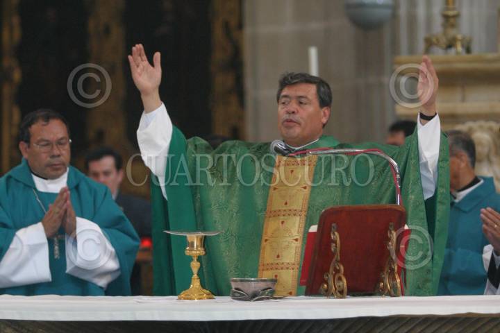 México, D.F. 05 SEPTIEMBRE 2004.- Una señora mayor observa a el presidente Vicente Fox y a su esposa mientras escuchan misa en la catedral metropolitana. FOTO: Sandra Perdomo/CUARTOSCURO.COM