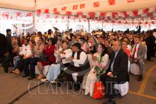 CIUDAD DE MÉXICO, 14FEBRERO2019.- Más de 300 parejas se dieron cita en la explanada de la alcaldía Venustiano Carranza para unirse en matrimonio, esto como parte de las celebraciones por el Día de San Valentín en la demarcación. Estas bodas colectivas fueron acompañadas de stands de registro civil, regalos para los novios, pastel y hasta tacos para los invitados. En ediciones pasadas la alcaldías de Tlalpan y Álvaro Obregón fueron las que registraron más uniones con dos mil 398 y mil 805 parejas, respectivamente. FOTO: ROGELIO MORALES /CUARTOSCURO.COM